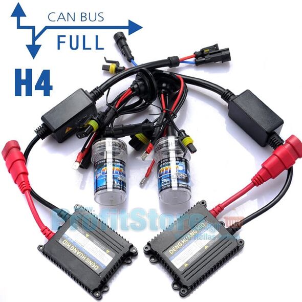 Υψηλής αξιοπιστίας και απόδοσης set 35W Super Bright H4 διπλής σκάλας που συνδυάζει εξαιρετική συμβατότητα Can Bus και μεταλλικά Slim Ballast.