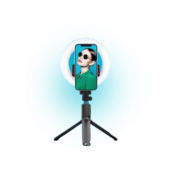 Στερεώστε το φωτιστικό δαχτυλίδι πάνω στο τρίποδο γραφείου και το κινητό σας στην ειδική περιστρεφόμενη βάση στο κέντρο του δαχτυλιδιού. Έχετε, μέσα σε δευτερόλεπτα, έναν επαγγελματικό φωτισμό για φωτογραφίες, Vlogging, Social Media Live κλπ.