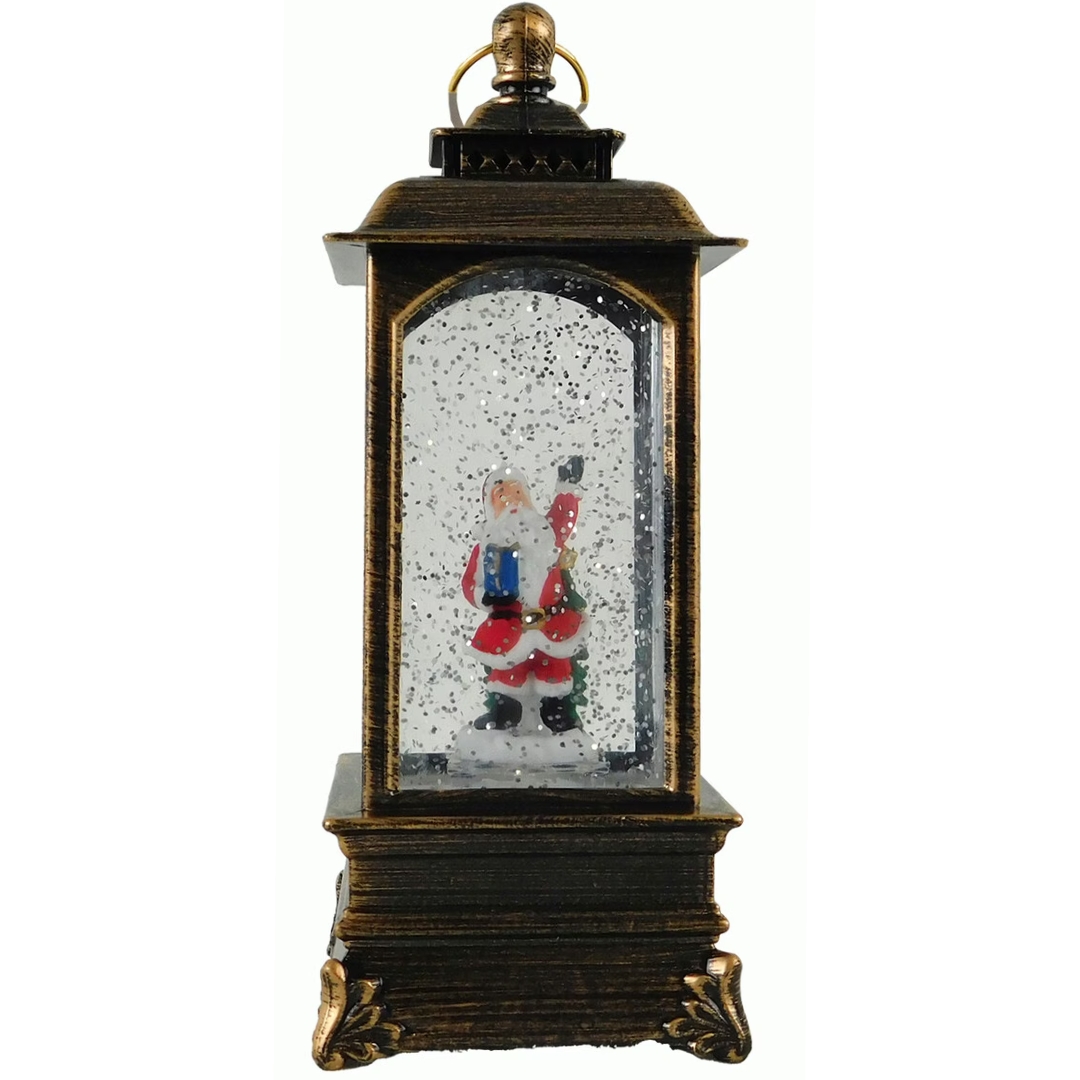 Φωτιζόμενο Χριστουγεννιάτικο Φανάρι με Εφέ Χιονιού & Άγιο Βασίλη 23 cm