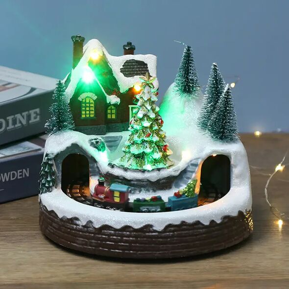 Μαγευτικό φωτιζόμενο χιονισμένο χωριό με κινούμενο τρενάκι, μουσική και LED φώτα. Ιδανικό χριστουγεννιάτικο διακοσμητικό για κάθε χώρο, προσφέρει ζεστή, γιορτινή ατμόσφαιρα και μοναδική αισθητική.