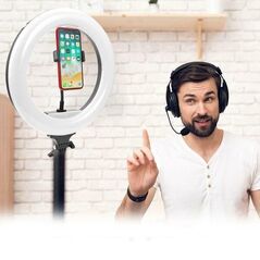 Πλήρης επαγγελματικός φωτογραφικός φωτισμός, με το νέο φωτιστικό δαχτυλίδι LED 21cm. Διαθέτει 3 βάσεις, για να στηρίζετε έως και 3 κινητά, χρωματισμός φωτισμού από 3000K έως 6000K και ισχύ 6 έως 15W. Ιδανικό για make-up artists, youtubers, tik tokers, φωτογράφους και σε κάθε είδους live streaming.