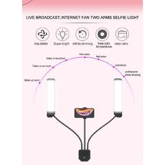 Πρωτοποριακό διπλό φωτιστικό LED 35W με βάση κινητού. Διαθέτει 3 ρυθμίσεις θερμοκρασίας φωτός και ρυθμιζόμενη φωτεινότητα. Ιδανικό για επαγγελματικού επιπέδου φωτογραφίες, βίντεο, live streaming ή ακόμα και σαν φωτιστικό σε μαγαζια περιποίησης όπως κομμωτήρια κλπ.