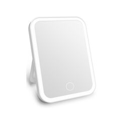 Καθρέπτης μακιγιάζ επιτραπέζιος με LED φως και ανεμιστήρα (13.5x18cm, λευκός). Ιδανικός για μακιγιάζ, skincare και επαγγελματική χρήση. Παρέχει φυσικό φωτισμό χωρίς τρεμούλιασμα για τέλεια εφαρμογή και άνεση. Μοντέρνος σχεδιασμός για κάθε μπουντουάρ.