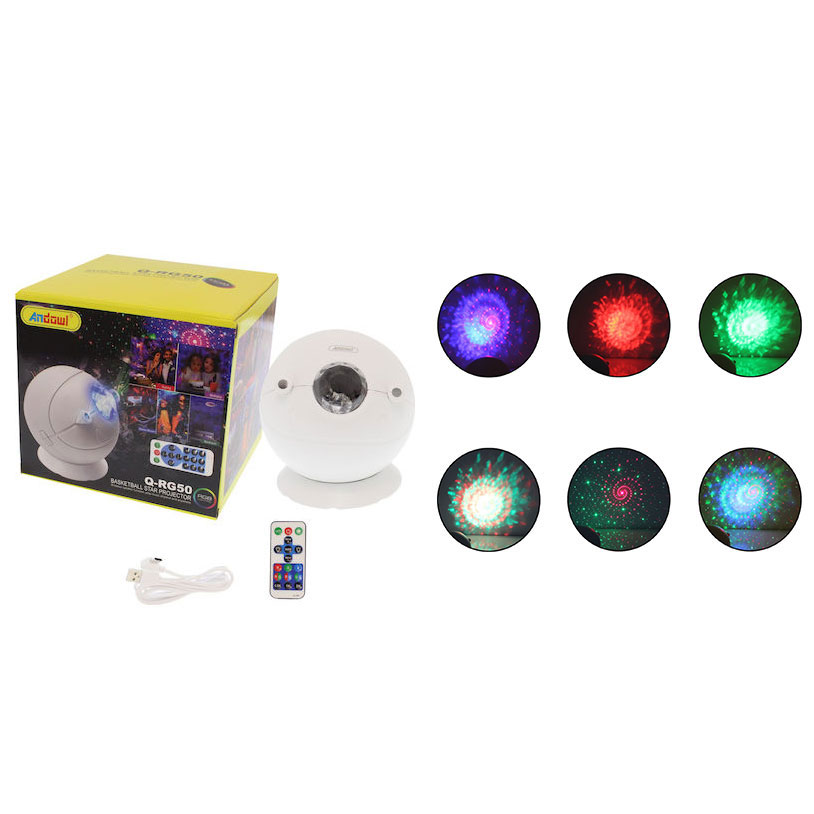 Φωτορυθμικό Mini Φωτιστικό-Προτζέκτορας Μπάλα Andowl Q-RG50 RGB με Bluetooth Ηχείο και Τηλεχειριστήριο
