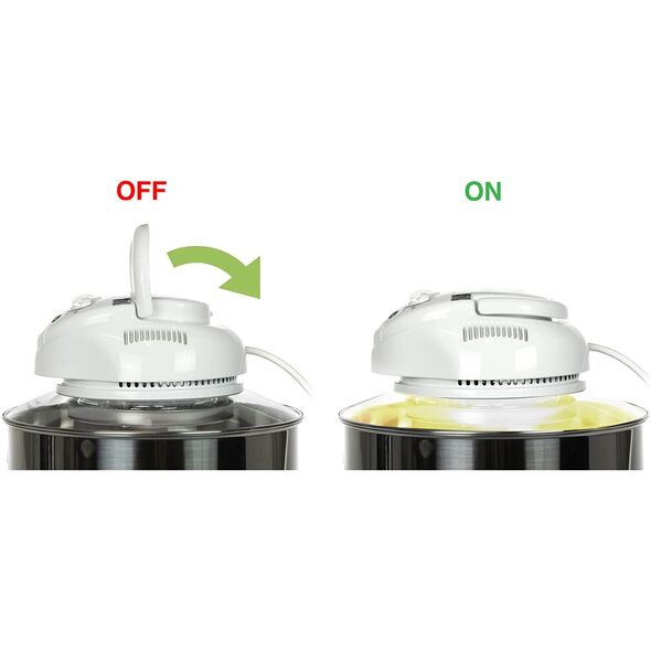 Κουμπί ασφαλείας: Αφού ρυθμίσετε την ώρα και τη θερμοκρασία, πατήστε το κουμπί ασφαλείας και χαμηλώστε τη λαβή και, στη συνέχεια, μπορείτε να ξεκινήσετε το μαγείρεμα στο φούρνο με ζεστό αέρα.