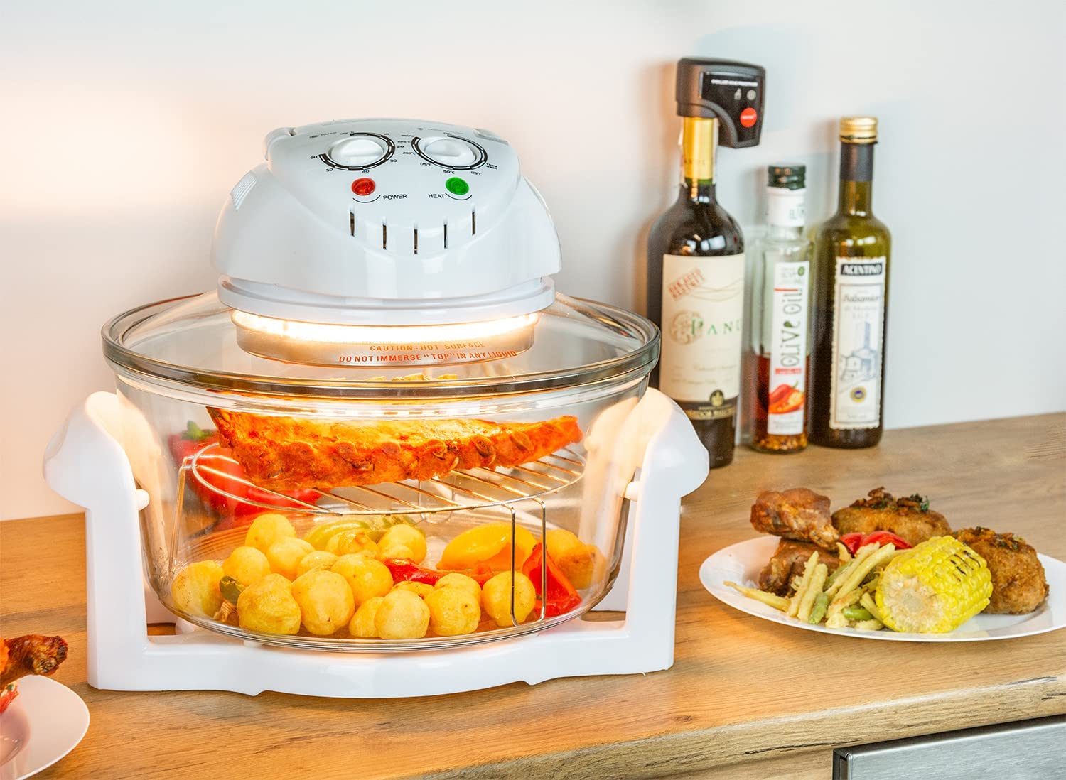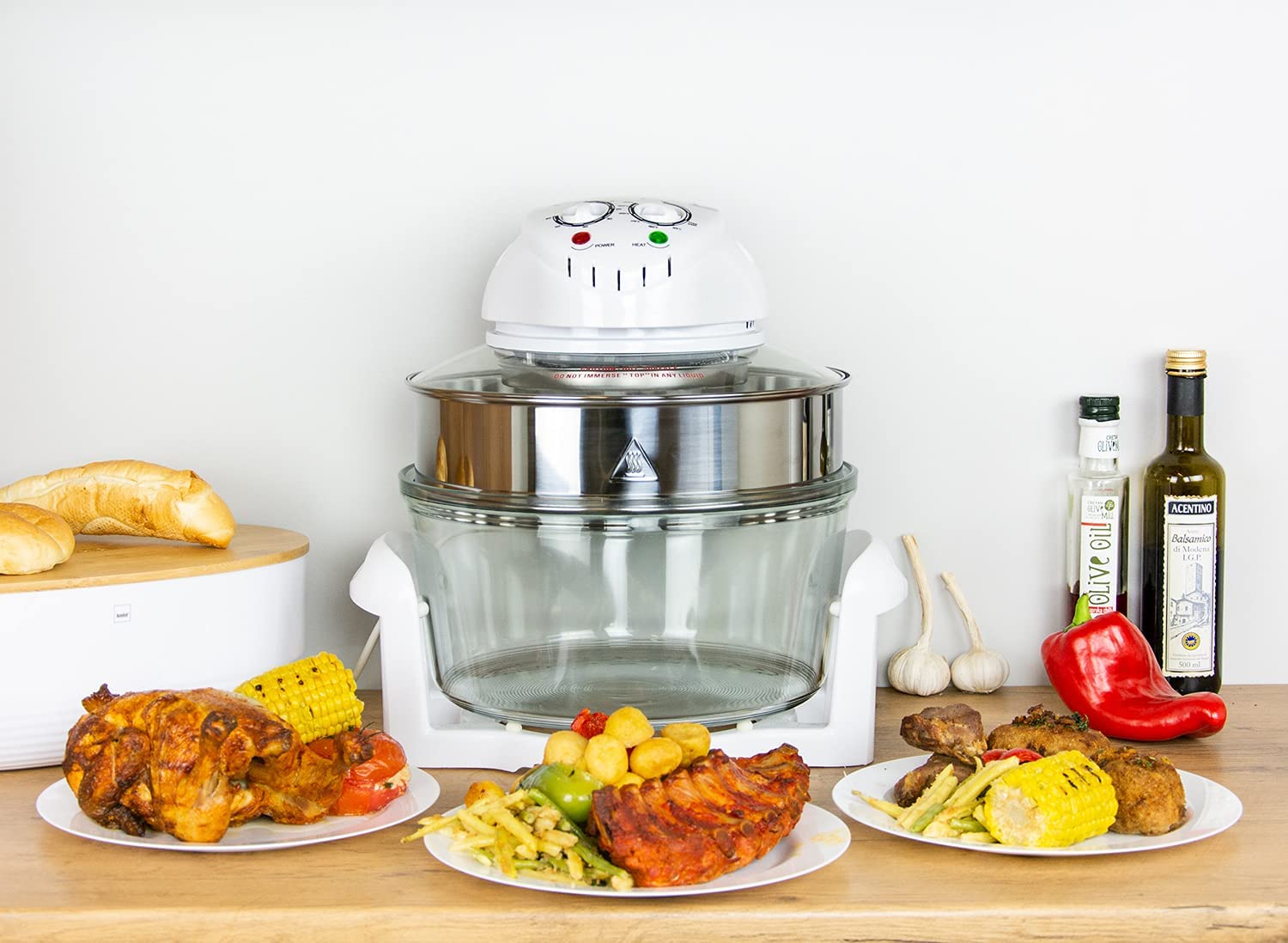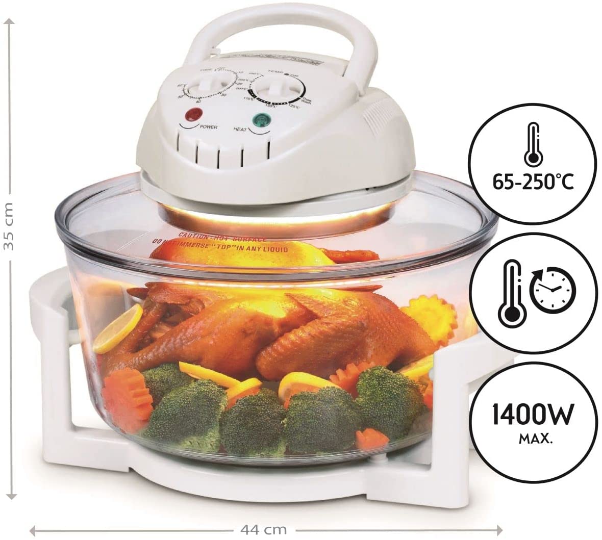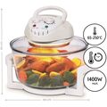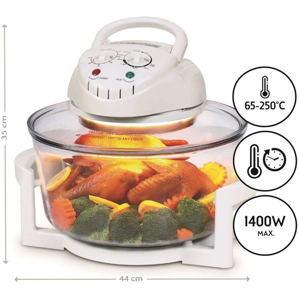 Ιδανικό για μαγείρεμα, σχάρα, τηγάνισμα χωρίς λάδι, ψήσιμο, απόψυξη, ξήρανση και αποστείρωση τροφίμων γρήγορα και υγιεινά. Διατηρεί θρεπτικά συστατικά και φυσική γεύση με απαλό και ομοιόμορφο μαγείρεμα, μειώνοντας τον χρόνο και την κατανάλωση ενέργειας. Ρυθμιζόμενη θερμοκρασία από 65 ° έως 250 ° ιδανική για μαγείρεμα μιας άπειρης ποικιλίας συνταγών.