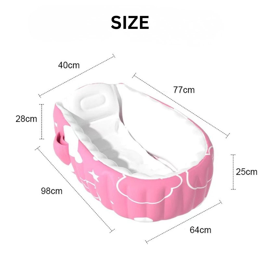 Φουσκωτή μπανιέρα μωρού με ανατομικό στήριγμα πλάτης και μαλακά τοιχώματα για άνετο και ασφαλές μπάνιο. Πτυσσόμενος σχεδιασμός για εύκολη μεταφορά και αποθήκευση, ιδανική για νεογέννητα και βρέφη.
