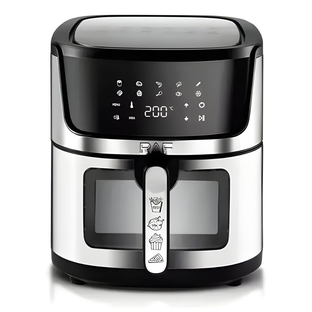 Η φριτέζα αέρος RAF 9L έχει σχεδιαστεί για όσους θέλουν υγιεινό μαγείρεμα με λιγότερο λάδι, διαθέτοντας μεγάλη χωρητικότητα 9 λίτρων και ισχύ 1950W για σταθερή και ομοιόμορφη κυκλοφορία θερμού αέρα.