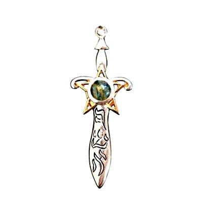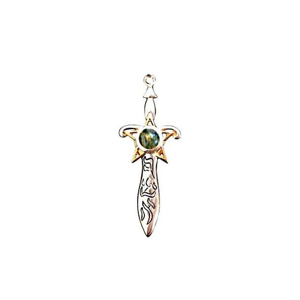 Αυτό το Φυλαχτό κόσμημα είναι από 925 Ασήμι με χρυσό 18 καρατίων και λαβραδορίτη που έχει τοποθετηθεί στο ξίφος του μάγου και αστρολόγου Ashshaph μαζί με ένα αστέρι πεμπτουσίας για Μαγική Ικανότητα.