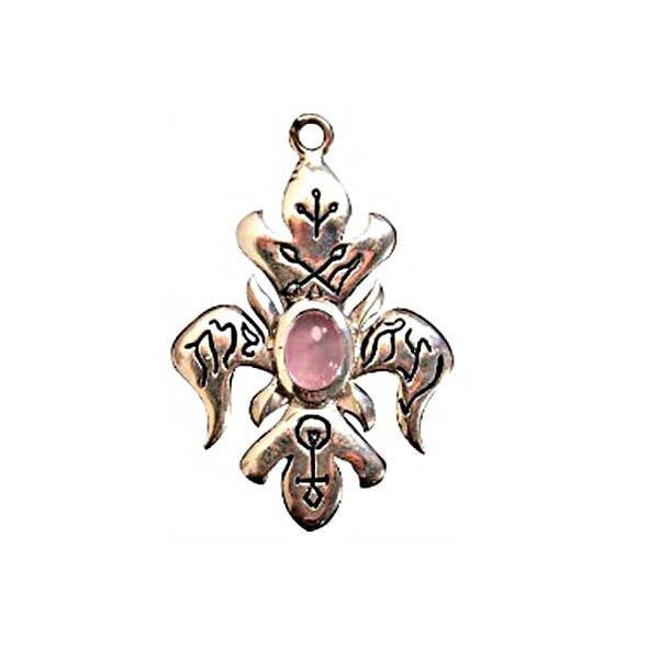 Αυτό το Φυλαχτό κόσμημα είναι από 925 Ασήμι με Ροζ Χαλαζία, τοποθετημένος στο σύμβολο ειρήνης FleurdeLis, πάνω στο οποίο είναι χαραγμένο κείμενο αγάπης και νίκης στα αρχαία Εβραϊκά. Φέρνει αγάπη σε όποιον το φοράει.