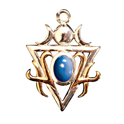 Αυτό το Φυλαχτό κόσμημα είναι από 925 Ασήμι με χρυσό 18 καρατίων και Μπλε Χαλκηδόνιο, πέτρα του θάρρους με τη δύναμη του συμβόλου του Δία για να αντιμετωπίζετε κάθε φόβο.