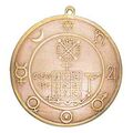 Είναι φτιαγμένο από χαλκό και μπρούτζο και συνοδεύεται από μαύρο κορδόνι.