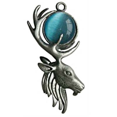 Το επιβλητικό αρσενικό ελάφι έχει στεφτεί με τη σεληνιακή σφαίρα της Αυτοκράτειρας της νύχτας. Στα αρχαία δάση, τα κέρατα του ελαφιού – όπως τα απλωμένα κλαδιά του δάσους – έφταναν ψηλά και απλώνονταν με τη δύναμη της ζωής. Το πανέμορφο αυτό φυλαχτό φοριέται για να δώσει μυστικιστική δύναμη και προστασία από κάθε κρυφό κίνδυνο.Μέγεθος (εκατ.): 2,5 X 5,0