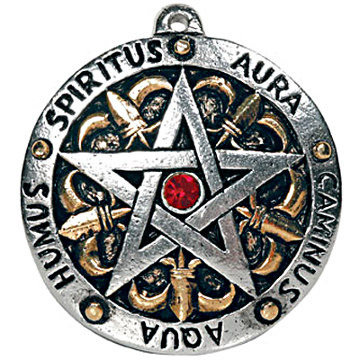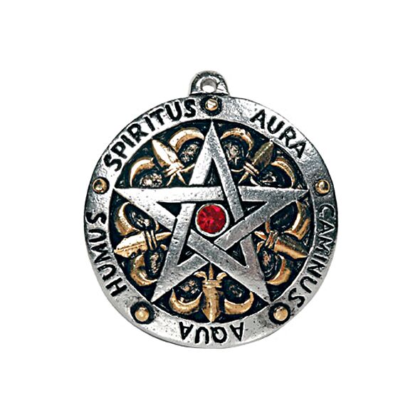 Περιτριγυρισμένη από τα πέντε στοιχεία της φύσης γραμμένα στα Λατινικά, αυτή η πεντάλφα μπορεί να φορεθεί για την επίτευξη σταθερότητας και εσωτερικής αρμονίας.