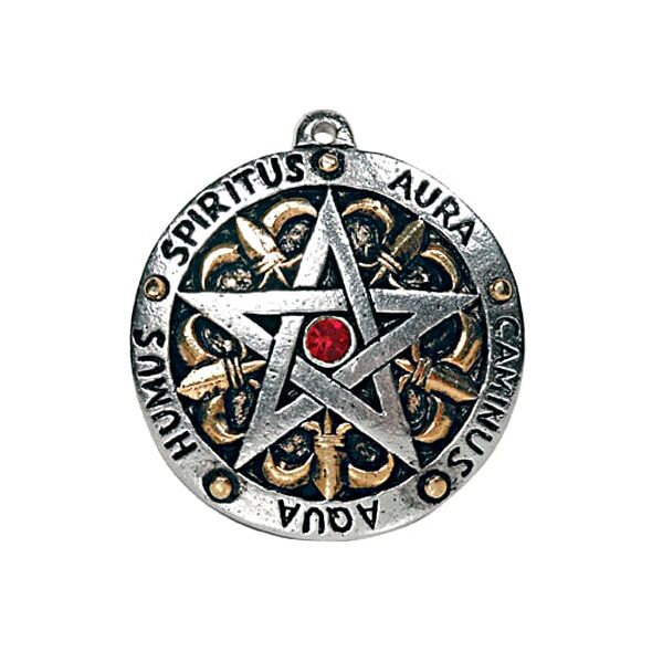 Περιτριγυρισμένη από τα πέντε στοιχεία της φύσης γραμμένα στα Λατινικά, αυτή η πεντάλφα μπορεί να φορεθεί για την επίτευξη σταθερότητας και εσωτερικής αρμονίας.Μέγεθος (εκατ.): 3,1 Διάμετρος