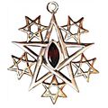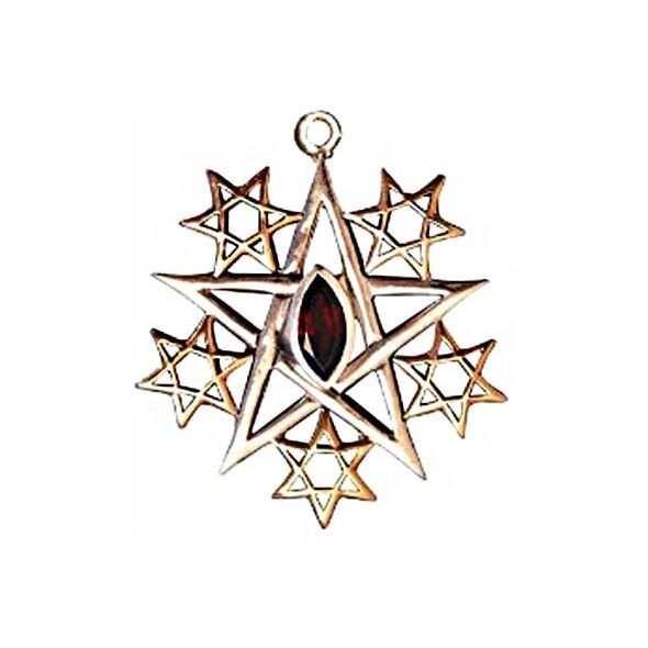 Αυτό το Φυλαχτό κόσμημα είναι από 925 Ασήμι με χρυσό 18 καρατίων και Γρανάτη πάνω στο σύμβολο της πεμπτουσίας, το πέμπτο και υψηλότερο στοιχείο μετά από τον αέρα, τη γη, τη φωτιά και το νερό. Ένα πεντάγραμμο με πέντε εξάγραμμα που εντείνει τη διαίσθηση.