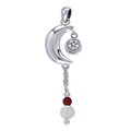 Η Σελήνη, αρχαίο σύμβολο ομορφιάς, διαίσθησης και δύναμης ενώνεται με την πεντάλφα, σύμβολο αιώνιας προστασίας και επιθυμίας. Το φυλαχτό αυτό ενδυναμώνεται από τον κόκκινο Γρανάτη, λίθο του πάθους και της γοητείας.