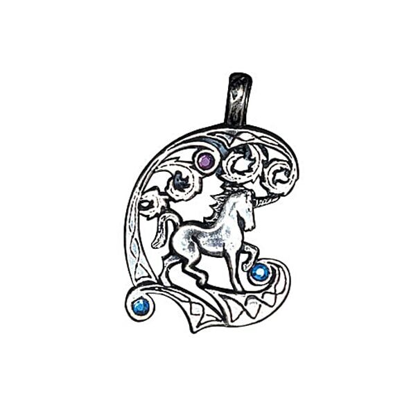 Σύμβολο του αθέατου κόσμου, ο Μονόκερως αναζητάει τη δικαίωση όλων των αγνών ανθρώπων και γίνεται προστάτης και σύμμαχος σε κάθε θεραπεία σε όποιον τον φοράει.Μέγεθος:2,8x4,2 εκ.
