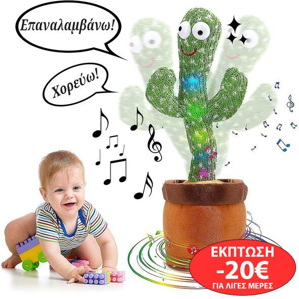 Το χαριτωμένο αυτό κακτάκι διαθέτει πολλά ενσωματωμένα ξένα hits τραγούδια για πολύ γλέντι και χορούς, αντιδράει, μιμείται και επαναλαμβάνει ότι ακούει!