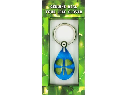 Αυτό το γαλάζιο μπρελόκ, ως απλό σχέδιο είναι ελκυστικό για τους άνδρες και τις γυναίκες όλων των ηλικιών. Αυτό το μπρελόκ περιέχει ένα πιστοποιημένο πραγματικό τετράφυλλο τριφύλλι από το φυτό Trifolium repens. Έρχεται έτοιμο σε ένα όμορφο κουτί που λειτουργεί όχι μόνο ως εγγύηση γνησιότητας, αλλά περιέχει επίσης πληροφορίες σχετικά με τα τριφύλλια τεσσάρων φύλλων, κάτι που το καθιστά ιδανικό για να δοθεί ως δώρο.
