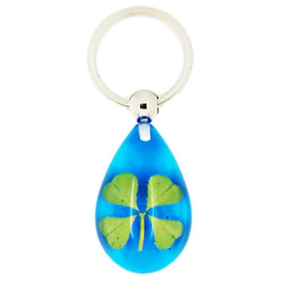 Γαλάζιο μπρελόκ με Γνήσιο Τετράφυλλο Τριφύλλι