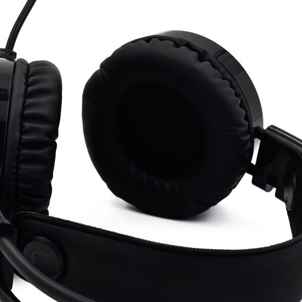 Over Ear Gaming headset με μέγεθος ακουστικών 50mm, διακοσμητικό φωτισμό με πορτοκαλί LED και Μικρόφωνο για PC, laptop, PS4 και κινητές συσκευές με συνδέσεις 3.5mm jack, USB και αντάπτορα διπλού 3.5mm jack.