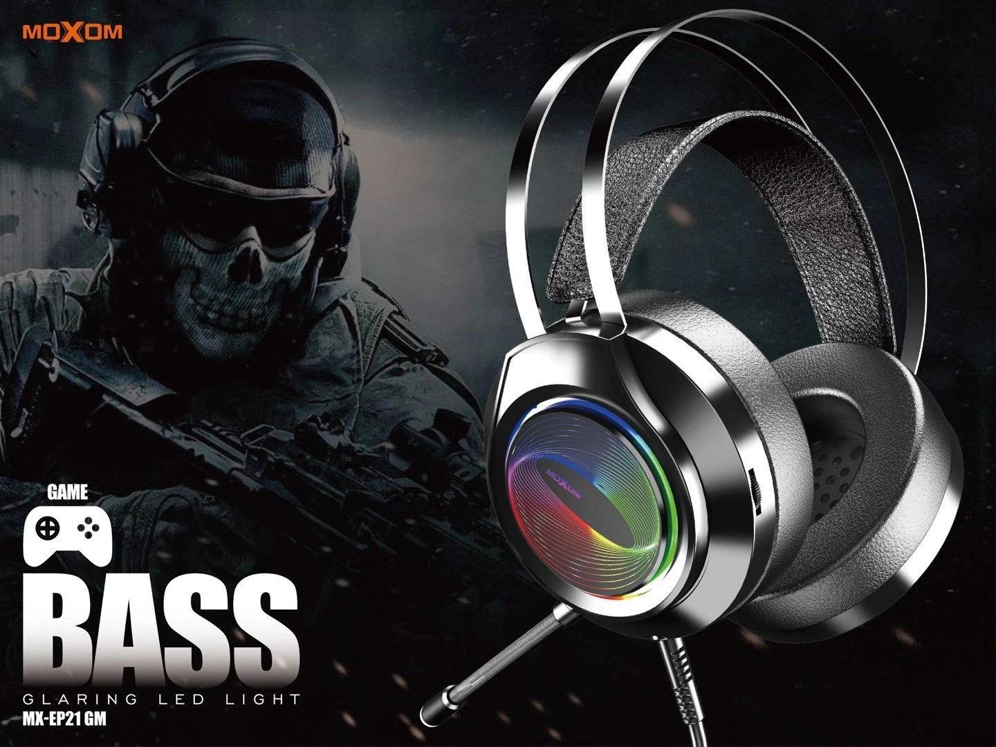 Gaming Ακουστικά Moxom Extra OverEar 3D Surround USB Jack 3,5mm με Πολύχρωμο LED Φωτισμό & Ρυθμιζόμενο Μικρόφωνο - Ενσύρματα PC & PS4 Headset