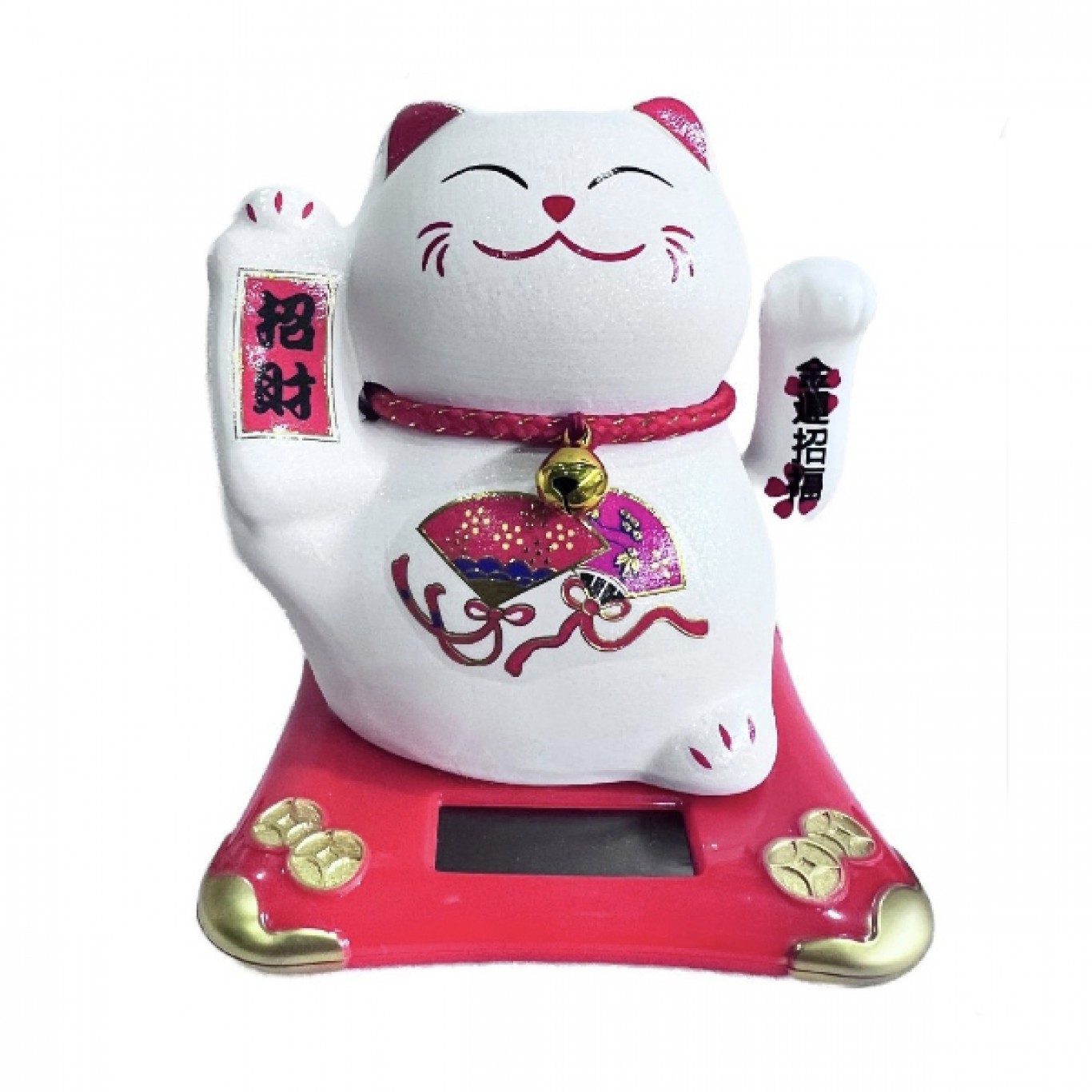Γάτα Καλωσορίσματος που Λειτουργεί με τον Ήλιο Λευκή/Κόκκινη-Solar Feng Shui Welcome Cat Για Τύχη και Ευημερία