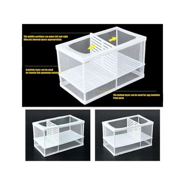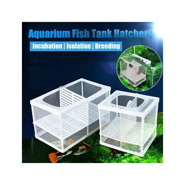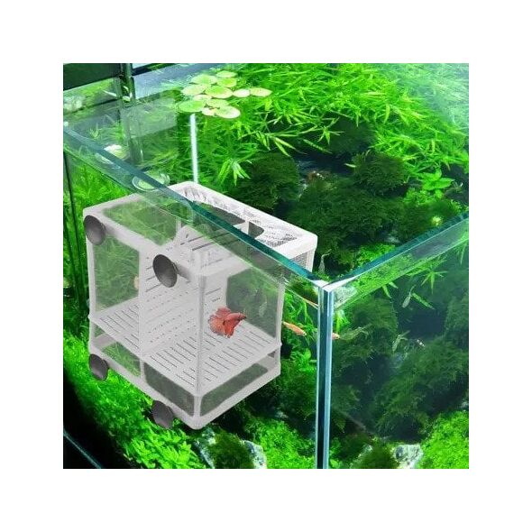 Γεννήστρα ψαριών με πλαστικό σκελετό, δίχτυ και χώρισμα για την ωοτοκία και το μεγάλωμα των νεαρών ψαριών στο ενυδρείο.