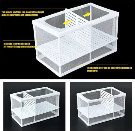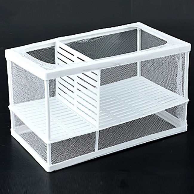 Γεννήστρα ψαριών με πλαστικό σκελετό, δίχτυ και χώρισμα για την ωοτοκία και το μεγάλωμα των νεαρών ψαριών στο ενυδρείο.