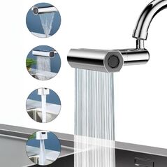 Έξυπνη επέκταση βρύσης κουζίνας 4 σε 1 με 360° περιστροφή, λειτουργία waterfall και 4 modes ροής. Ιδανική για πλύσιμο φρούτων, πιάτων και καθημερινή χρήση – εύκολη εγκατάσταση και υψηλής ποιότητας κατασκευή.