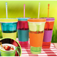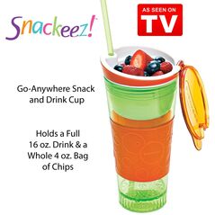 Πείτε τον καφέ σας, τον χυμό ή το αγαπημένο σας ρόφημα, και παράλληλα απολαύστε τον σνακ ή το κολατσιό σας. Όλα μέσα σε αυτό το ποτήρι, στο γραφείο στην εκδρομή, στην παραλία ή στο ταξίδι. Περιλαμβάνει ένα καλαμάκι με καπάκι και το επάνω μέρος για το σνακ έχει ένα φλιπ καπάκι.