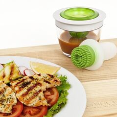 Μαγειρέψτε σαν σεφ! Επαναστατικό σύστημα ραντίσματος για φαγητά, γλυκά, μαγειρικά σκεύη. Απλώστε λάδι, βιτάμ, σος και λεμόνι γρήγορα & εύκολα! Εύκολο στο πλύσιμο. Πλένεται και στο πλυντήριο πιάτων. Το γυάλινο βαζάκι του μπορεί να τοποθετηθεί και στο φούρνο μικροκυμάτων.
