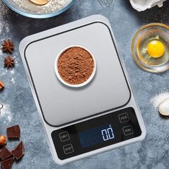 Ηλεκτρονική ζυγαριά υψηλής ακριβείας ζυγίζει μέχρι 5 κιλά με ακρίβεια 1 γραμμαρίου. Εκτός από την ζύγιση τροφίμων η ζυγαριά είναι σε θέση να υπολογίσει και τους όγκους νερού ή Γάλακτος.