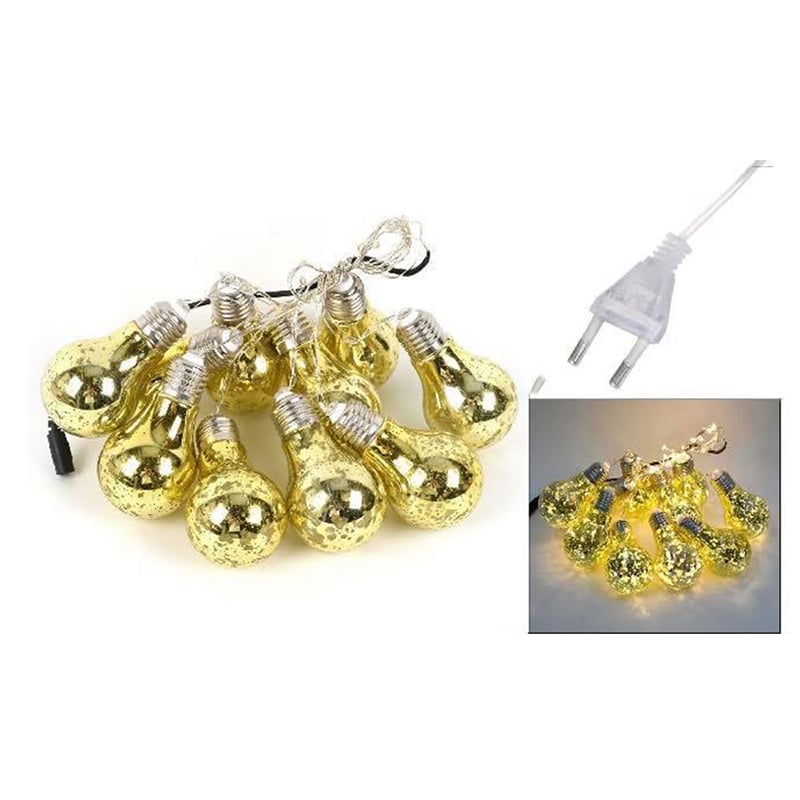Γιρλάντα Φωτισμού - LED Φωτάκια 10 Μπάλες Χρυσές Γκλίτερ