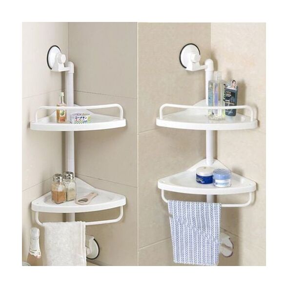 Γωνιακή Διπλή Ραφιέρα Μπάνιου / Κουζίνας & Πετσετοκρεμάστρα Ράφι με Βεντούζες