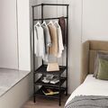 Γωνιακή Μεταλλική Κρεμάστρα - Ραφιέρα & Παπουτσοθήκη Δαπέδου με 3 Ράφια 180x45x30cm - Corner Storage Rack Μαύρο
