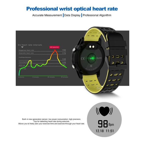 - Μέτρηση καρδιακού παλμού σε πραγματικό χρόνο, κατά την διάρκεια αθλητικών δραστηριοτήτων ή ανά ρυθμιζόμενη ώρα μέσα στην μέρα για πλήρη 24ώρη αναφορά της καρδιακής σας λειτουργίας. (το ρολόι μπορεί να μετράει αυτόματα ανά 10, 20, 30, 40, 50 ή 60 λεπτά τους καρδιακούς σας παλμούς για να μπορείτε να έχετε μια συνολική εικόνα της ημέρας σας)
