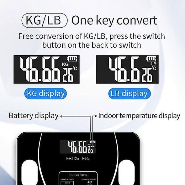 - Μονάδα μέτρησης βάρους: kg, lb, st (με δυνατότητα επιλογής)