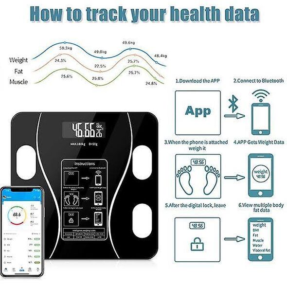 Μοντέρνα Ψηφιακή Ζυγαριά Μπάνιου Bluetooth με οθόνη LCD και ενσωματωμένους αισθητήρες που σας παρέχει πολλαπλές αναλύσεις για τη καλύτερη διαχείριση του σωματικούς σας βάρους. Απαραίτητη για κάθε οικογένεια, ειδικότερα για αθλητές, bodybuilders, γυμναστήρια και γενικά για όσους προσέχουν την διατροφή τους.