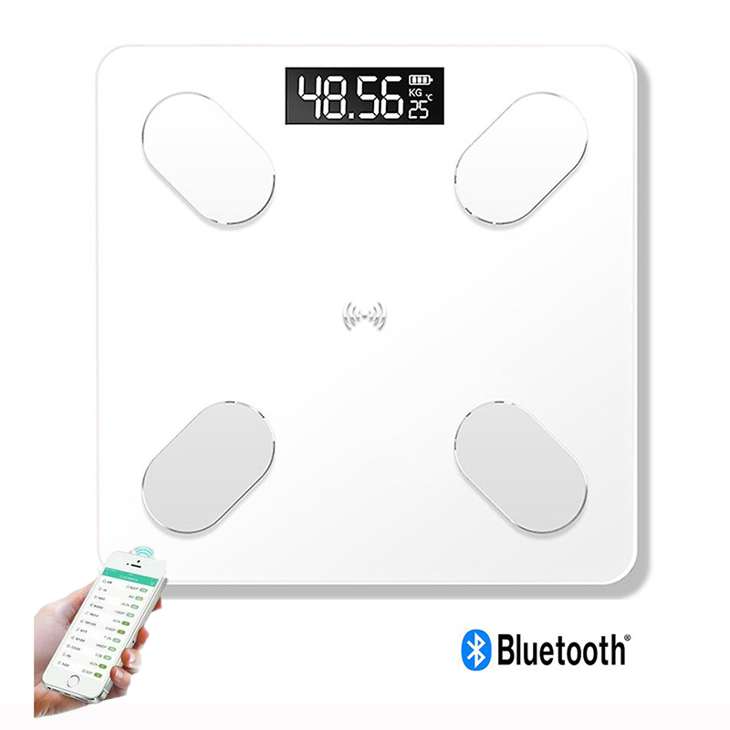 Γυάλινη Ψηφιακή Ζυγαριά Bluetooth για Μέτρηση Βάρους & Λιπομετρητή Σώματος Έως 180kg - Λευκή