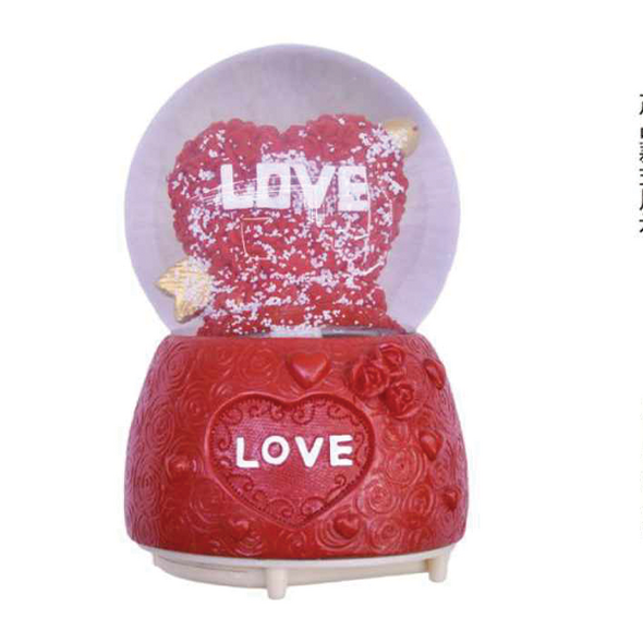 Γυάλινη Χιονόμπαλα με Καρδιά σε Σχήμα Τριαντάφυλλου με Βέλος Love 12×14.5cm