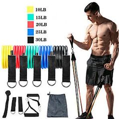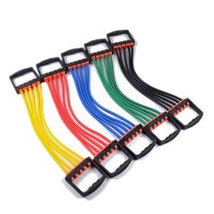 Λάστιχο αντίστασης, ιδανικό αξεσουάρ για την ανάπτυξη των μυών. Διαθέτει 2 πλαστικές εργονομικές λαβές, και 5 αποσπούμενα λάστιχα για την ρύθμιση της επιθυμητής αντίστασης.
