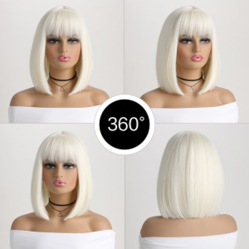 Γυναικεία Περούκα Καρέ με Αφέλειες σε Χρώμα Ξανθό Πλατίνα
