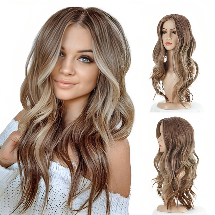 Αναβαθμίστε το στυλ σας με την γυναικεία περούκα σε ξανθό χρώμα με μακρύ μήκος και σπαστό χτένισμα, το τέλειο αξεσουάρ για να μεταμορφώσετε την εμφάνισή σας χωρίς κόπο!