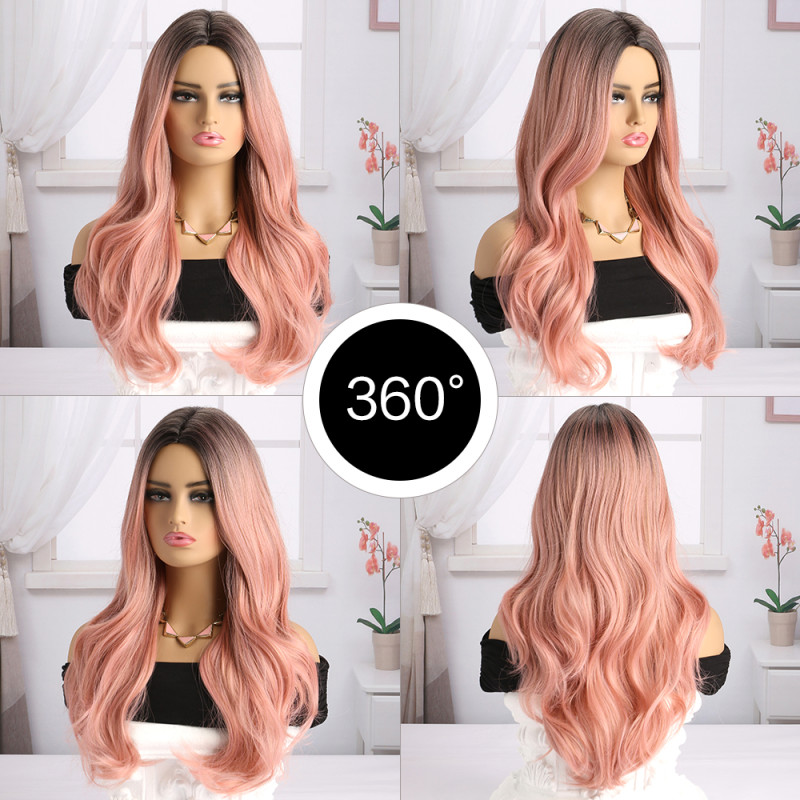 Αναβαθμίστε το στυλ σας με την γυναικεία περούκα σε ροζ χρώμα με μακρύ μήκος, κυματιστό χτένισμα και όμπρε, το τέλειο αξεσουάρ για να μεταμορφώσετε την εμφάνισή σας χωρίς κόπο!