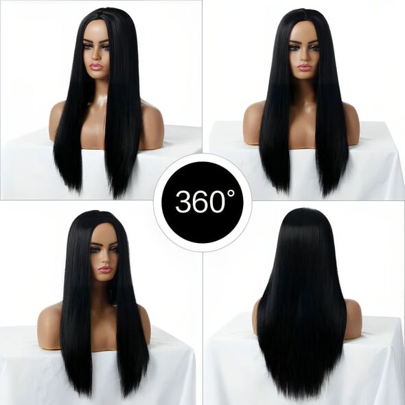 Αναβαθμίστε το στυλ σας με την γυναικεία περούκα σε μαύρο χρώμα με μακρύ μήκος, το τέλειο αξεσουάρ για να μεταμορφώσετε την εμφάνισή σας χωρίς κόπο!