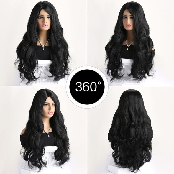 Αναβαθμίστε το στυλ σας με την Γυναικεία Περούκα σε χρώμα Μαύρο με Κυματιστό χτένισμα και Φράντζα, το τέλειο αξεσουάρ για να μεταμορφώσετε την εμφάνισή σας χωρίς κόπο!