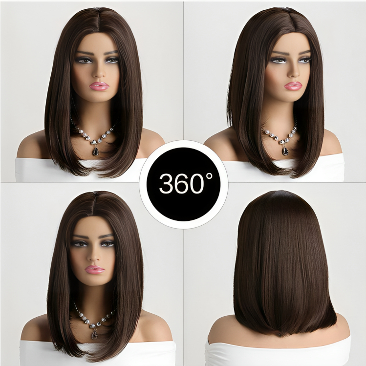 Αναβαθμίστε το στυλ σας με την γυναικεία περούκα σε σκούρο καφέ χρώμα με μακρύ καρέ, το τέλειο αξεσουάρ για να μεταμορφώσετε την εμφάνισή σας χωρίς κόπο!