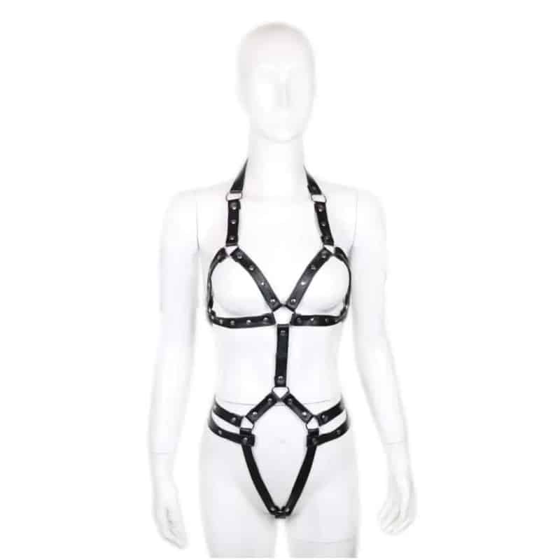 Εντυπωσιακό γυναικείο κορμάκι φετίχ από δερματίνη με λουριά, που αναδεικνύει τη σιλουέτα και προσθέτει δυναμικό χαρακτήρα σε κάθε εμφάνιση. Ιδανικό για αισθησιακές στιγμές και ιδιαίτερες βραδιές.